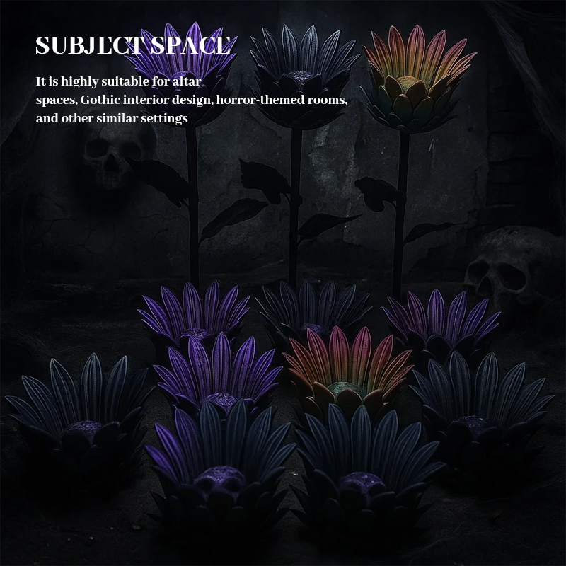 This piece combines the vibrant life of a sunflower with the haunting presence of a skull center, representing the delicate balance between life and death. A powerful decorative statement for those who appreciate dark aesthetics and symbolic art.