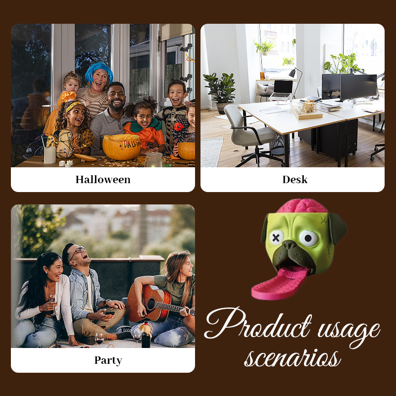 Where adorable pug meets stranger things! This mind-blowing interactive candy dispenser perfectly blends horror elements with healing pets. Simply press its soft and elastic "brain" to launch candies accurately onto the waiting tongue. Whether for Halloween parties, office stress relief, or collectors' displays, it brings laughter and sweetness in unexpected ways!