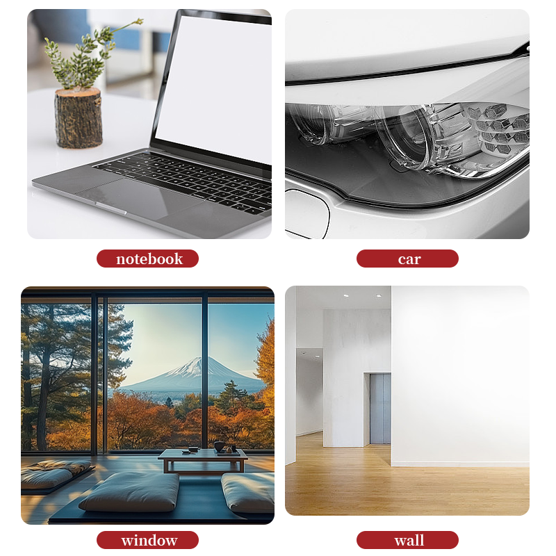 Your car is just the beginning. Adheres toĀ ANY smooth, hard surface: headlights, windows, laptops, water bottles, mirrors, walls... unleash your creativity! (Just make sure it's clean!).