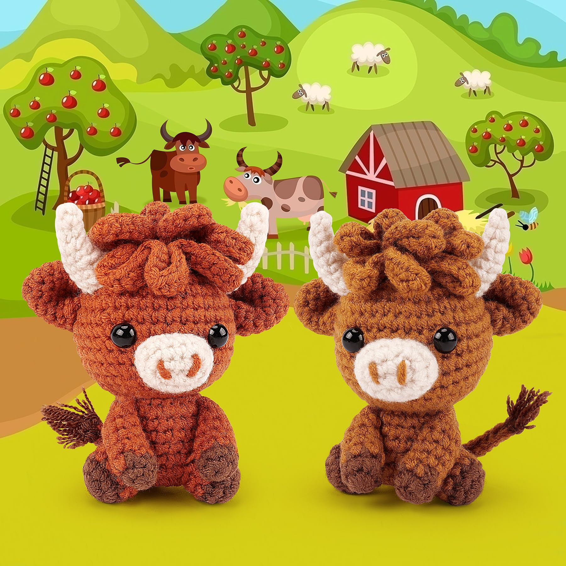 - 🏵️【Highland Cows Animals Crochet Kit for Beginners】 This crochet kit contains the required materials. Comes with extra yarn for practicing, which will give beginners more chances to try and support them to finish this piece successfully. The kit comes with two crochet hooks, so you can crochet this cute baby highland cows kit with your kids, friends, sisters and enjoy a happy crochet time.