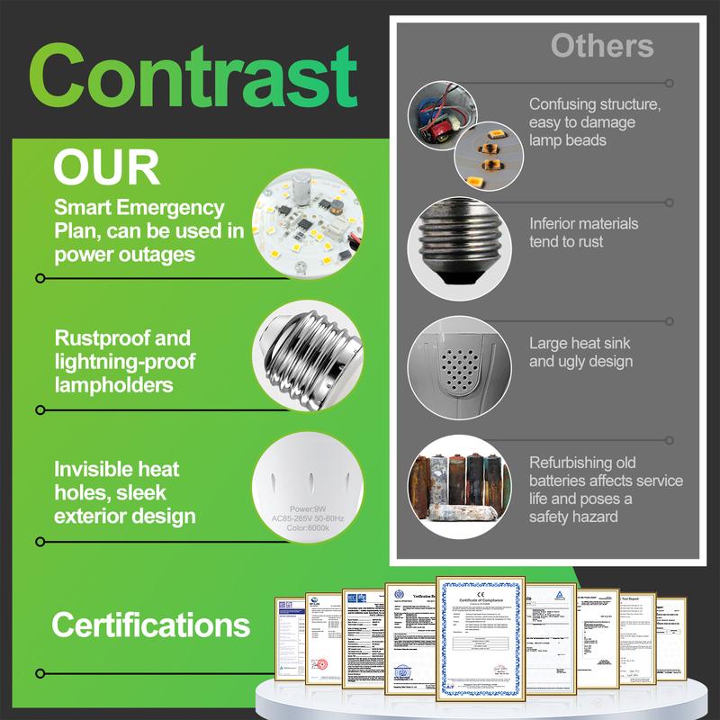 These innovative bulbs function asĀ regular LED bulbs during normal powerĀ and automatically switch toĀ emergency mode during outages, providing continuous light for 6-36 hours on a full charge.