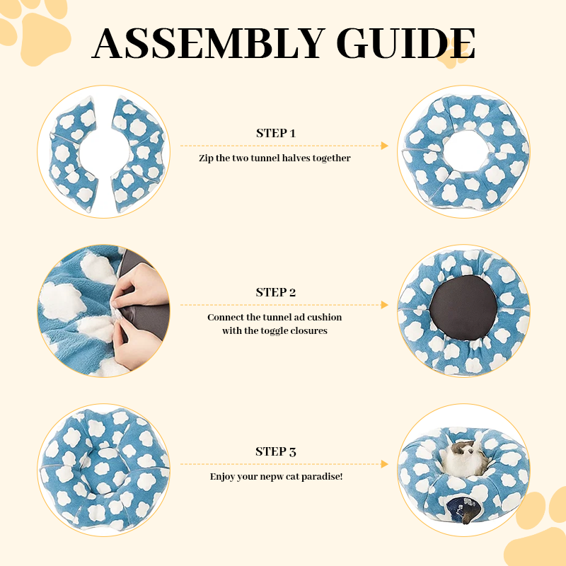 - 🧶 2-in-1 Play & Sleep Design — Zip the ends together to create a cozy donut bed for curling up, or unzip to form an exploratory tunnel for peek-a-boo play. Transitions in seconds so your pet can switch from zoomies to zzz’s without leaving their favorite spot.