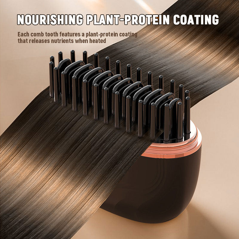 Each comb tooth features a plant-protein coating that releases nutrients when heated — reducing frizz, preventing damage, and leaving hair soft, shiny, and healthy. 🌱💆♀️