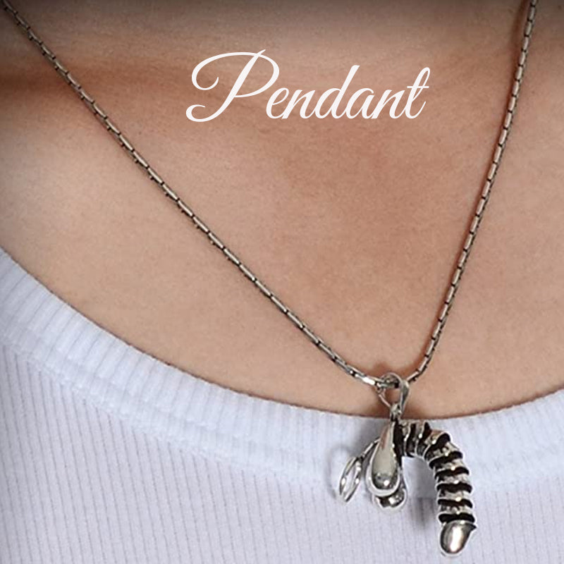 This is very strange. The more you look at it, the more you want to be the boy or girl who rocks this necklace.
