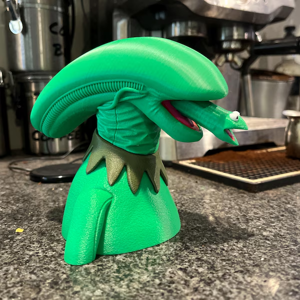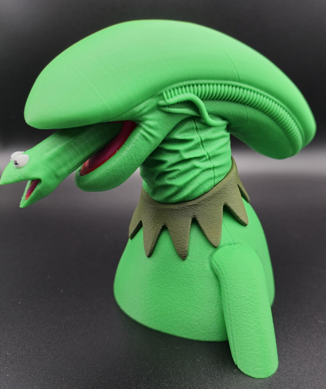 Xenokermit Bust: Alien Xenomorph Kermit Mashup